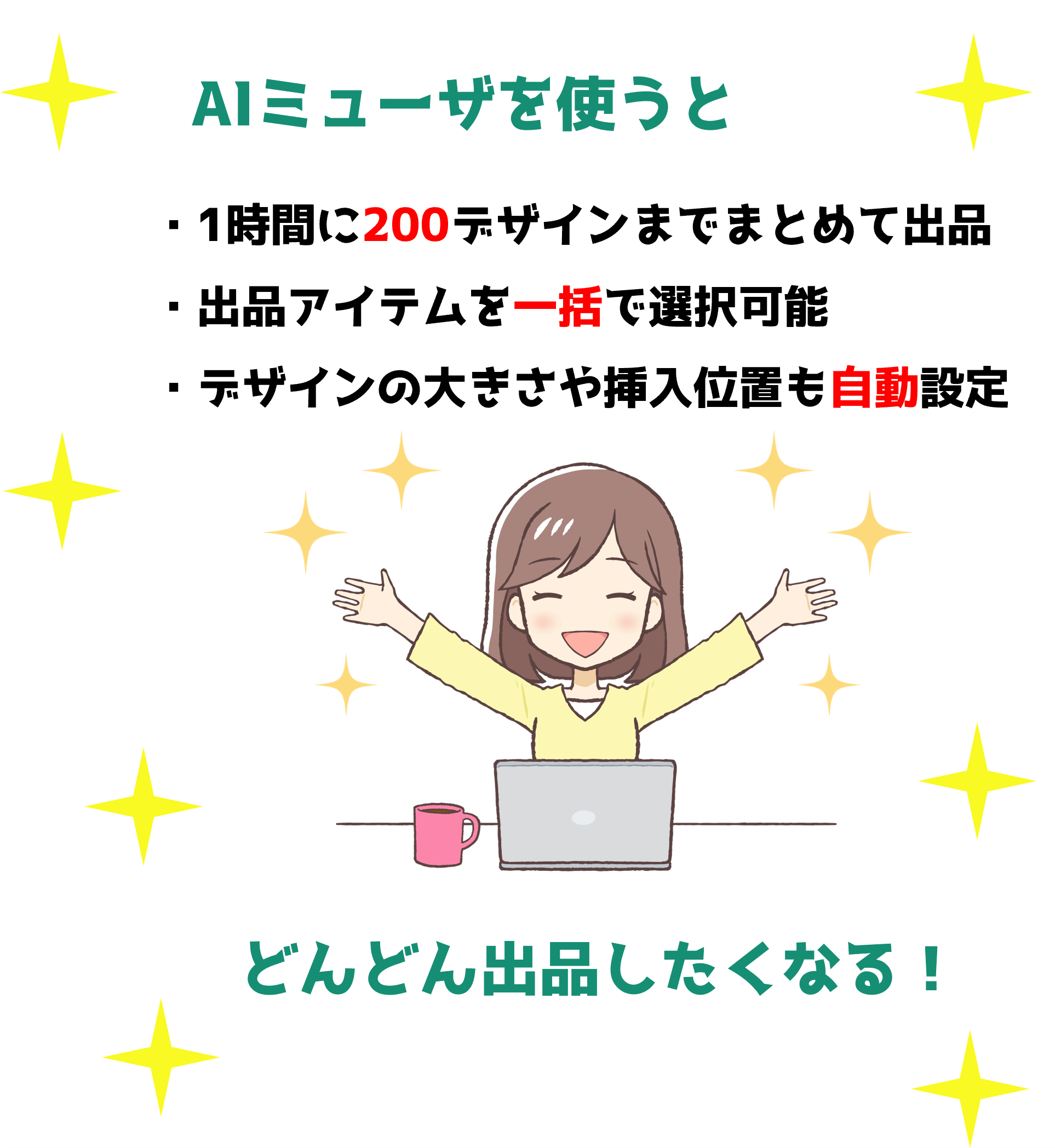 一括で出品したり、デザインの大きさや位置を